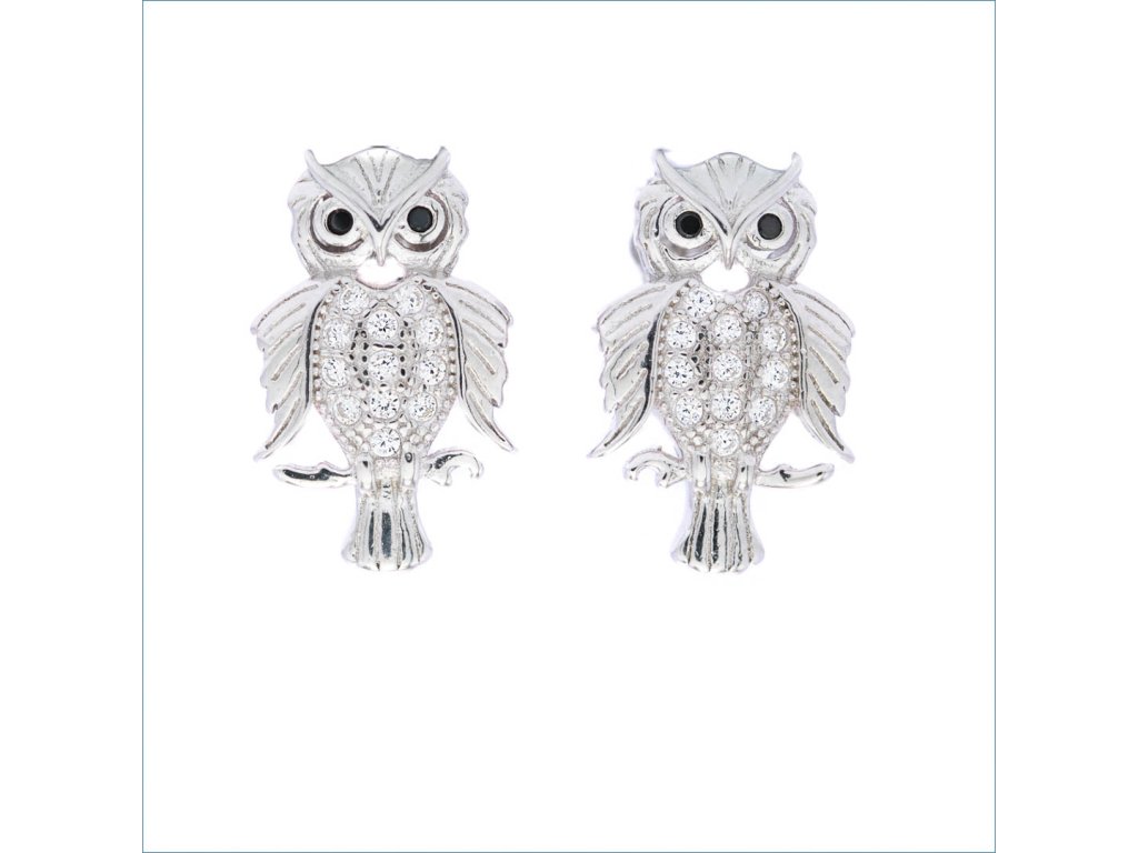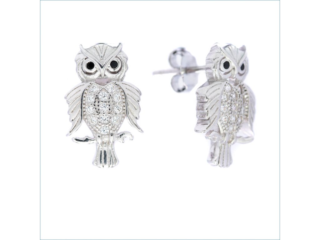 Strieborné napichovacie náušnice v tvare sovičiek Náušnice sovičky so zirkónmi