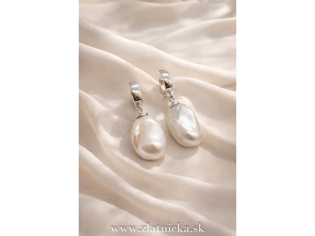 Strieborné náušnice s prírodnou barokovou perlou biela prírodná perla