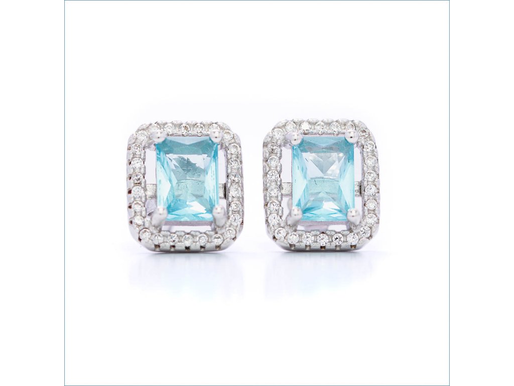 Tieto strieborné náušnice s puzetovým zapínaním upútajú pohľad svojím svetlomodrým zirkónom zasadeným do elegantného štvorcového tvaru. Centrálny kameň v podobe svetlomodrého zirkónu s briliantovým brusom vytvára dojem čistoty a sviežosti. Rámovanie z drobných čírych zirkónov pridáva náušniciam extra lesk a zaručí, že zažiaria pri každom pohybe.