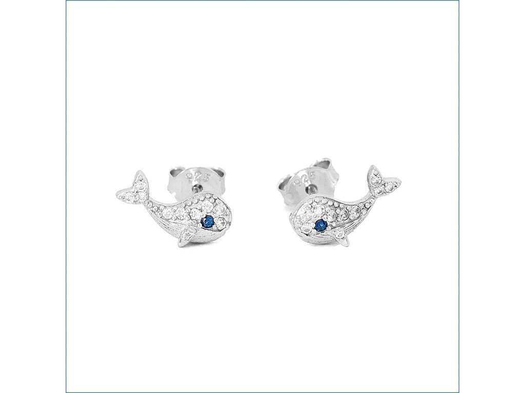 Strieborné náušnice veľryby veľryby so zirkónmi