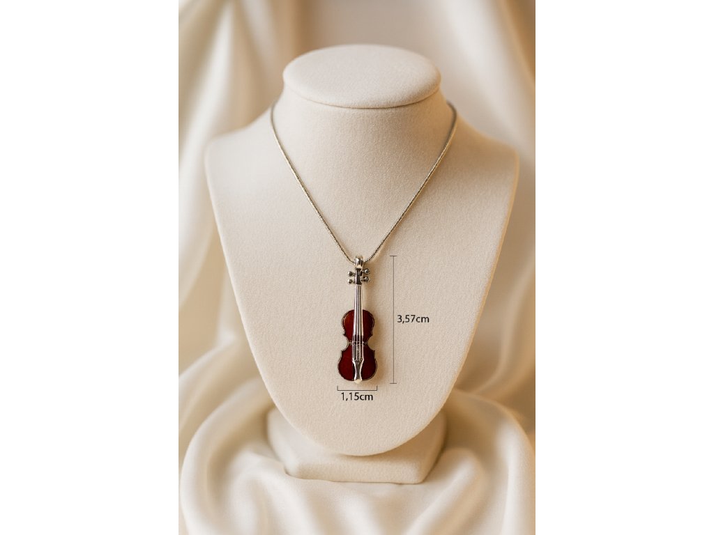 Objavte jedinečný strieborný prívesok, ktorý osloví každého milovníka hudby a originálnych doplnkov. Tento detailne prepracovaný šperk je vyrobený zo striebra 925/1000 a ozdobený prírodným jantárom s hrejivým medovým odtieňom. Precízne spracovanie zachytáva krásu klasického hudobného nástroja, čím sa jantárový prívesok stáva nielen šperkom, ale aj vyjadrením vášni a štýlu.