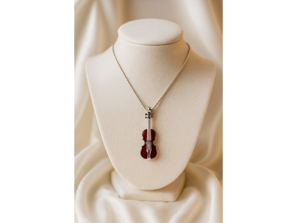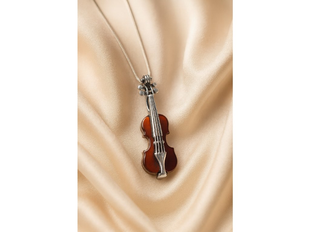 Elegantný prívesok v tvare huslí z pravého jantáru a striebra – unikát pre milovníkov hudby