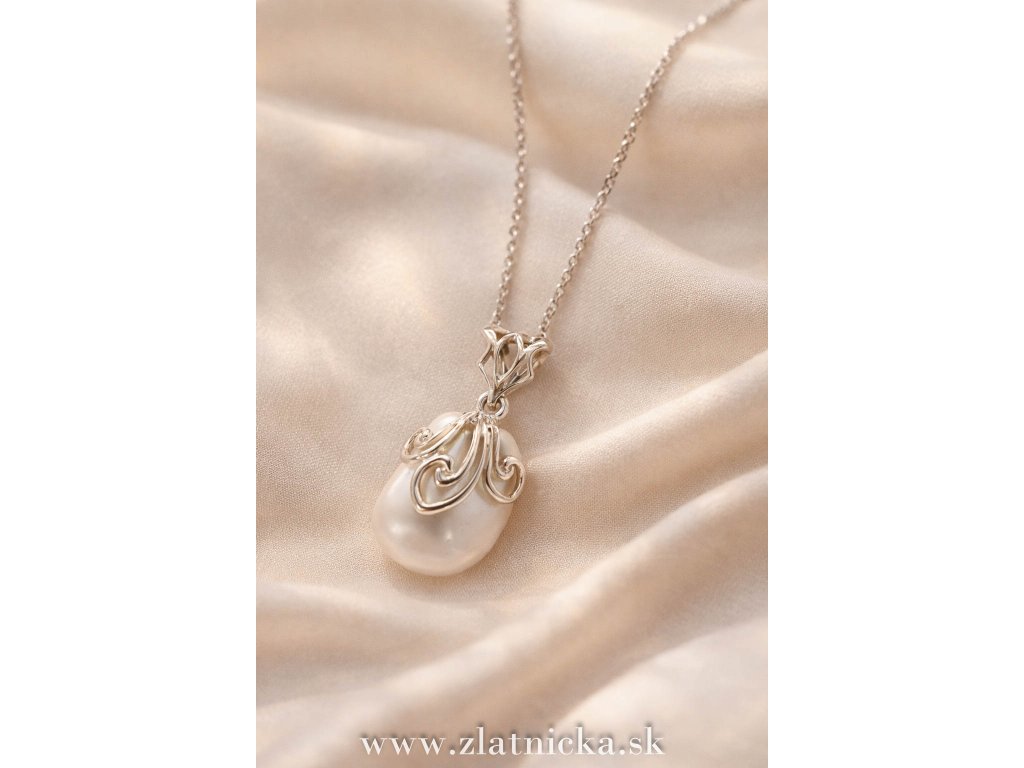 Strieborný prívesok s perlou filigránový detail prírodná perla