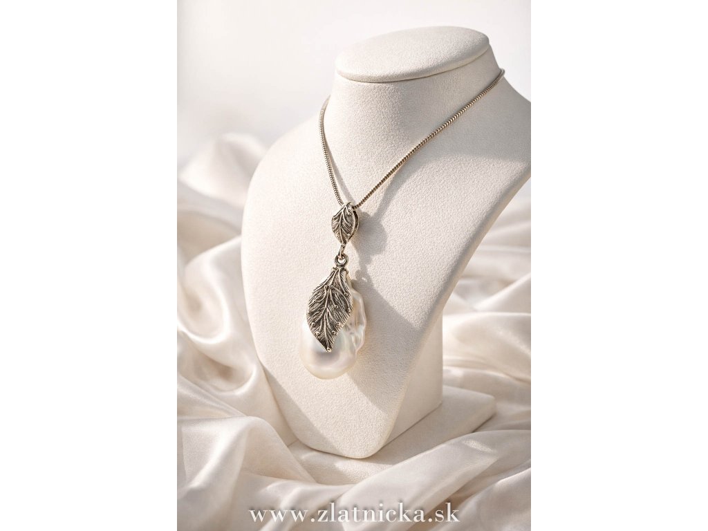 Strieborný perlový prívesok List s barokovou perlou prírodná baroková perla