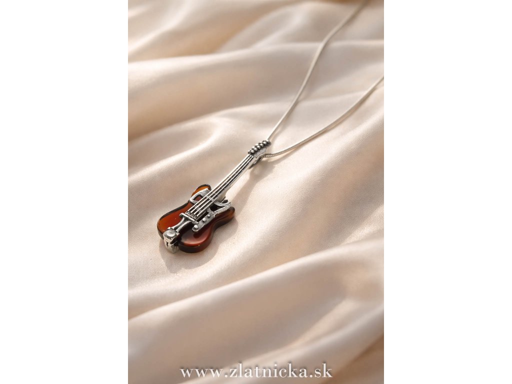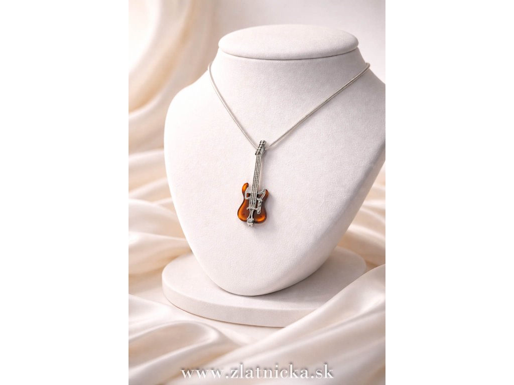 Tento originálny strieborný prívesok v tvare gitary je jedinečným šperkom, ktorý spája precízne remeselné spracovanie so symbolikou hudby a kreativity. Dominantným prvkom je prírodný jantár s teplým medovým odtieňom, ktorý dodáva šperku výnimočný charakter a prirodzenú eleganciu.