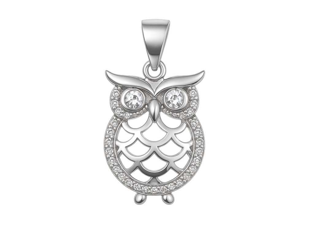 Strieborný prívesok sovičky s čírymi zirkónmi.