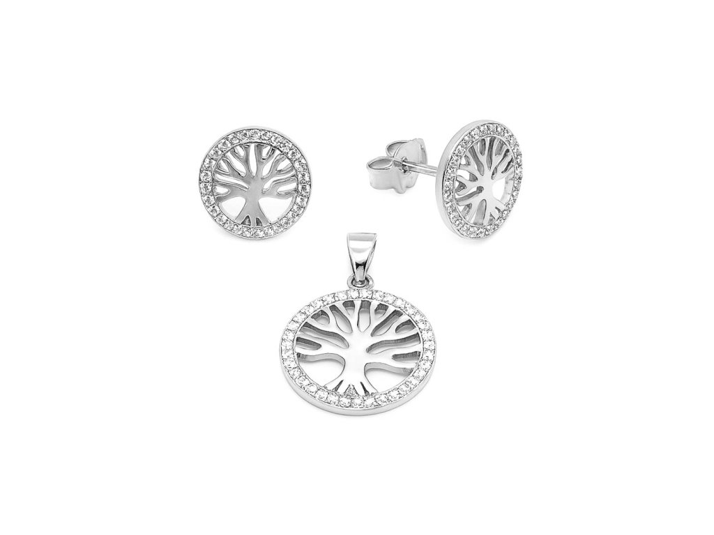Strieborný set Strom života so zirkónmi – náušnice a prívesok Strieborný set Strom života so zirkónmi – náušnice a prívesok zo striebra 925